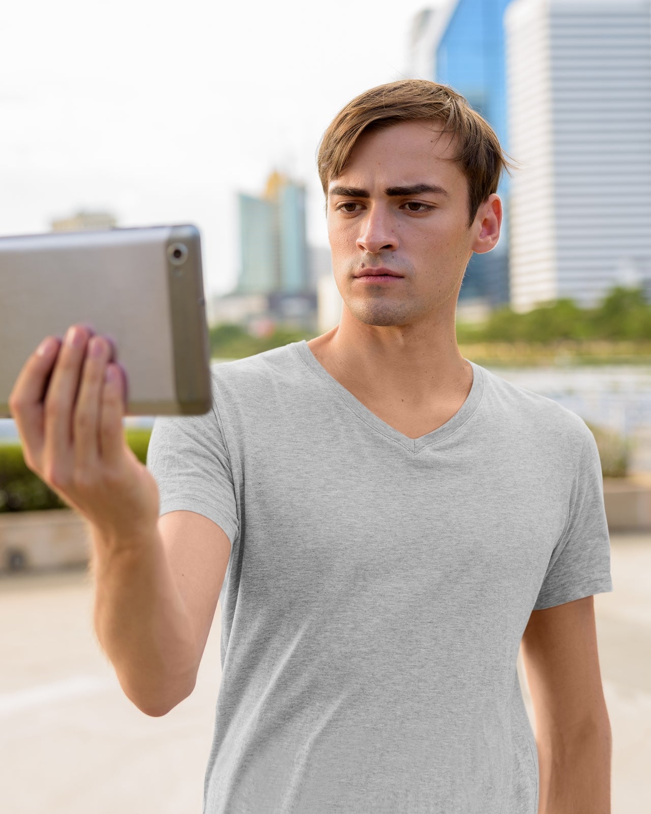 A classic v-neck, plain, short sleeve tshirt in soft cotton - perfect for casual, warm-weather style.