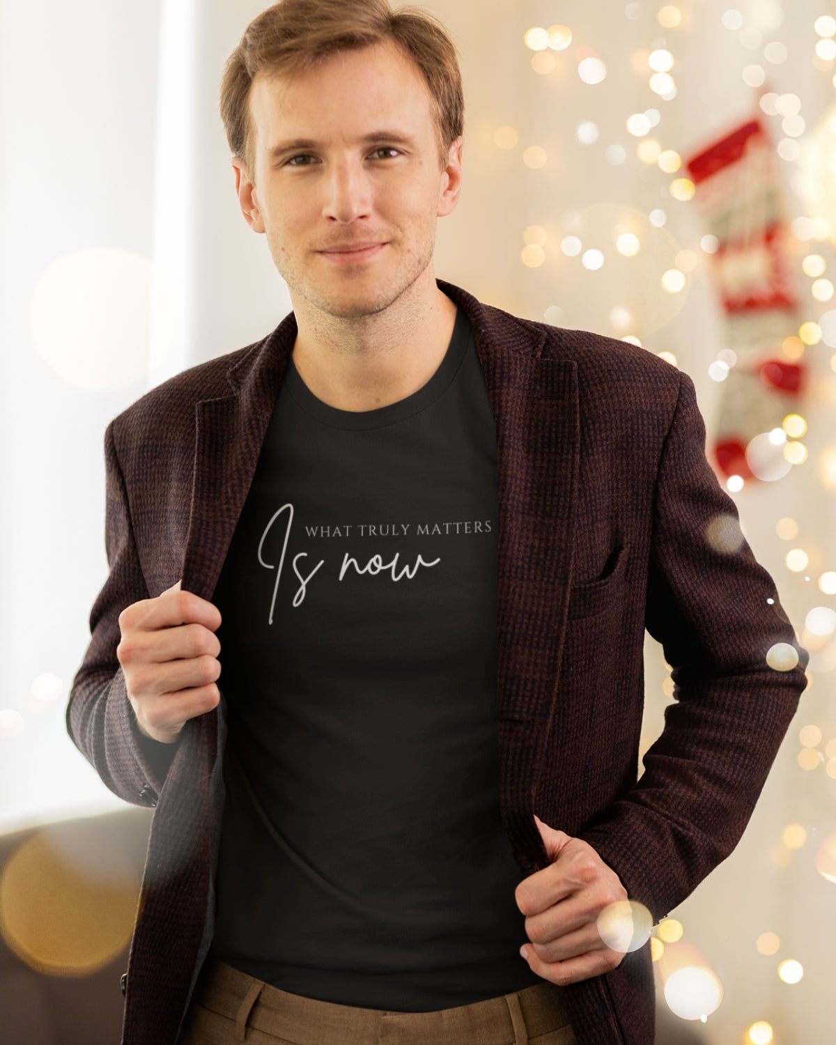 Made from premium Pima cotton, this black unisex t-shirt is soft, durable, and timeless. Featuring the minimalist mantra "What truly matters is now," it's a daily reminder to stay present—in style.